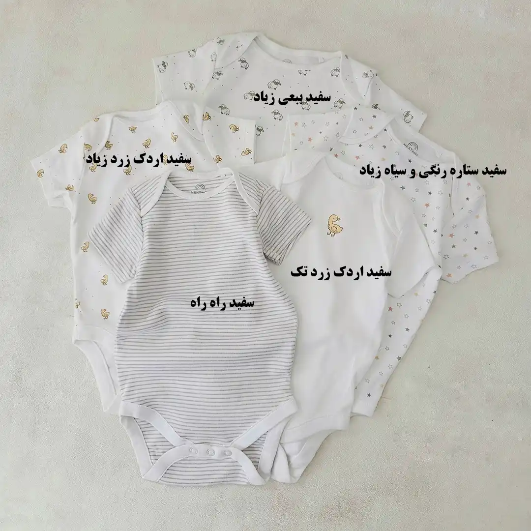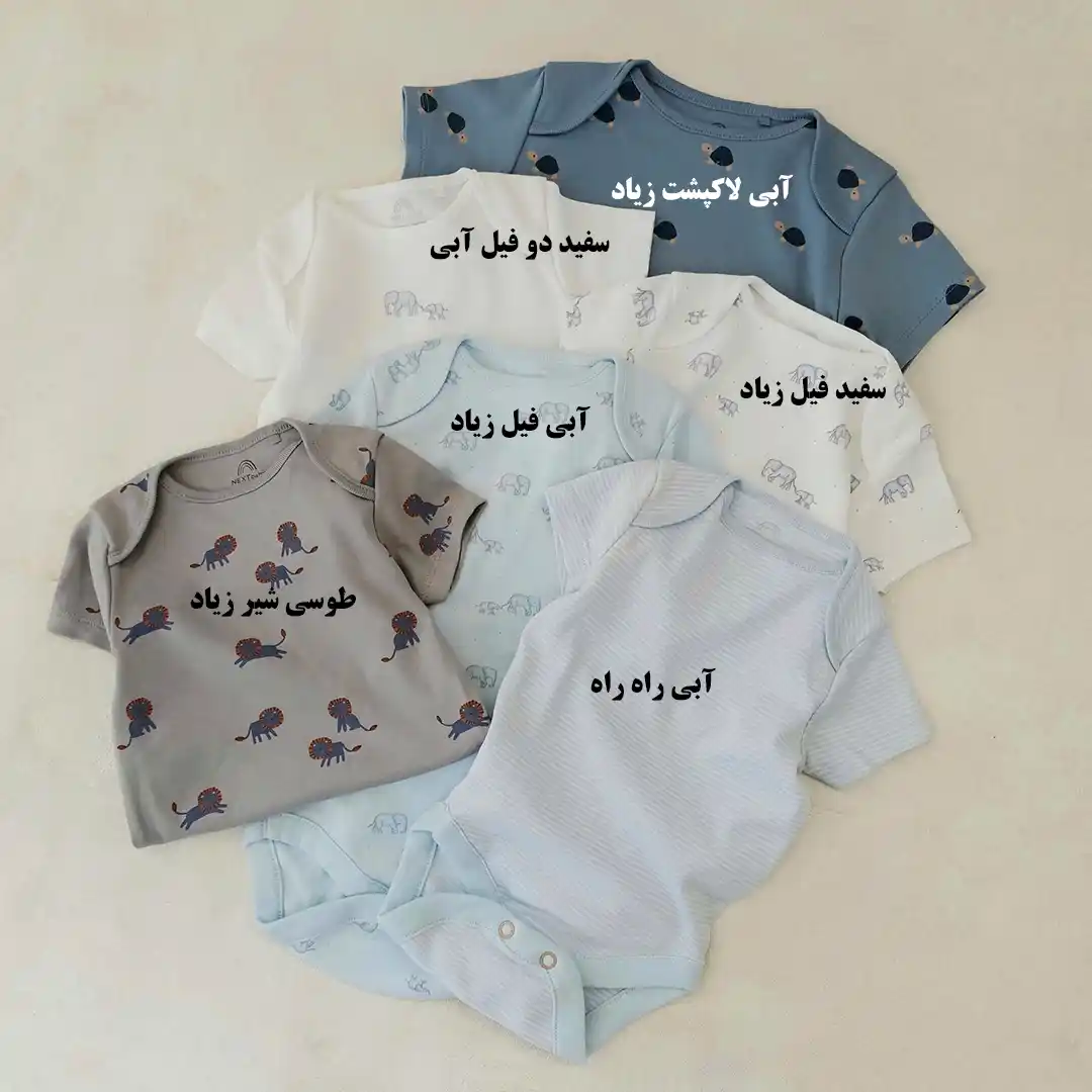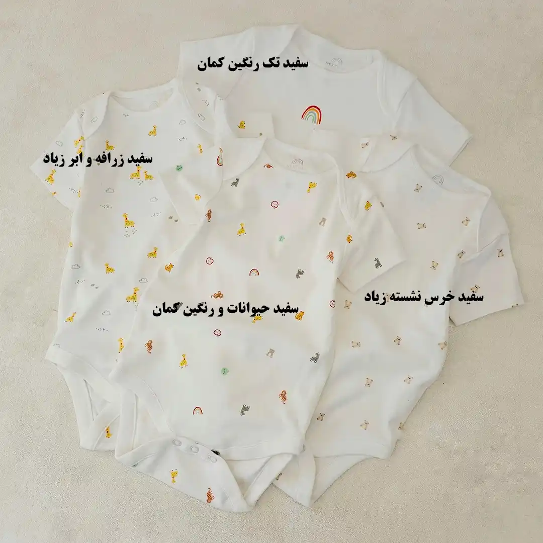 | رنگ | آبی خورشید تک, آبی راه راه, آبی فیل زیاد, آبی کدر ساده, آبی کمرنگ تک فیل, آبی کمرنگ فیل زیاد, آبی لاکپشت زیاد, آبی نفتی پررنگ ساده, آبی نفتی ساده, بنفش کبریتی گربه, زرد ساده, زرد موز, سبز ببر, سبز تک زرافه, سبز درخت کاج زیاد, سبز رنگیم کمان زیاد, سبز رنگین کمان تک, سبز زرافه تک, سبز صدری ساده, سبز کمرنگ پری, سبزآبی میمون, سفید imom, سفید اردک تک زرد, سفید اردک زرد زیاد, سفید ببر, سفید ببعی زیاد, سفید تک رنگین کمان, سفید تک زرافه, سفید تک شاخ صورتی, سفید تک شاه و قلعه زیاد, سفید حیوانات و برگ و درخت درشت, سفید حیوانات و رنگین کمان, سفید خرس نشسته زیاد, سفید دو ببعی, سفید دو فیل آبی, سفید راه راه, سفید زرافه رنگین کمان سیب تک, سفید زرافه و ابر زیاد, سفید ساده, سفید ستاره رنگی ریز زیاد, سفید ستاره رنگی و سیاه زیاد, سفید ستاره نارنجی زیاد, سفید فیل آبی زیاد, سفید گورخر سبز, سفید ماشین و دوچرخه, سفید موش صورتی روی ابر, صورتی ببر, صورتی تک شاخ, صورتی رنگین کمان زیاد, صورتی ستاره, طوسی رنگین کمان زیاد, طوسی ساده, طوسی شیر زیاد, عسلی پلنگی, قهوای خرس تک, کبریتی کله خرس زیاد, کرم خورشید, کرم نخودی حیوانات, نارنجی برگ, نخودی پلنگی, نسکافه ای پلنگی, نسکافه ای ساده, یاسی رنگین کمان |