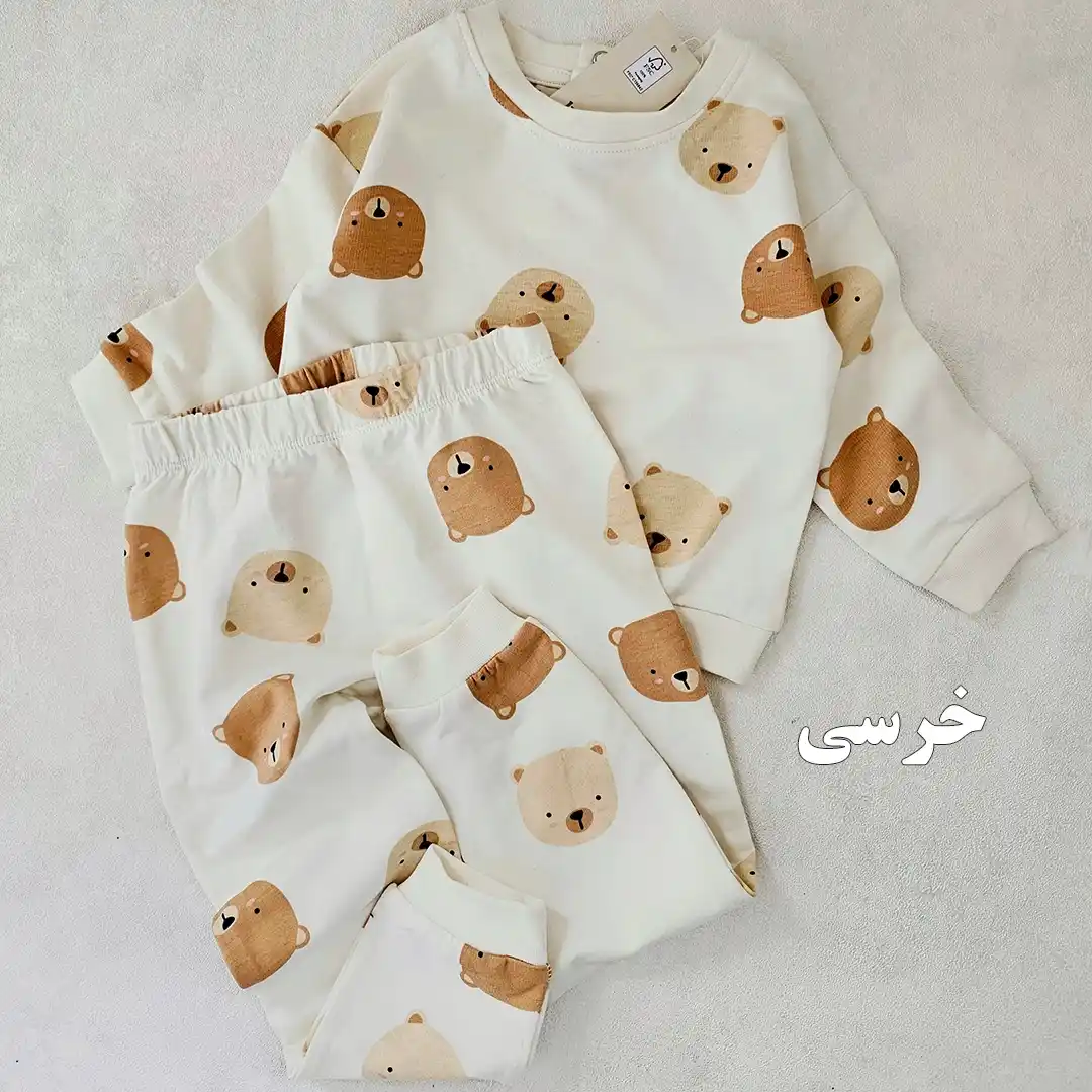 سایز 6 تا 12 ماه ( قد بلوز : 31 – پهنا بلوز : 28 – قد شلوار : 41 )