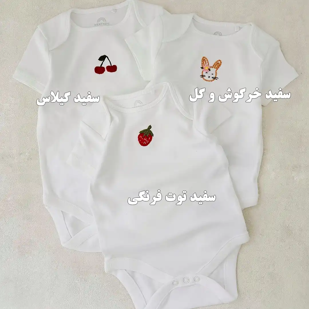 | سایز | 00, 0تا1ماه, 12تا18ماه, 18تا24ماه, 1تا3ماه, 2تا3سال, 3تا6ماه, 6تا9 ایراددار, 6تا9ماه, 9تا12ماه |