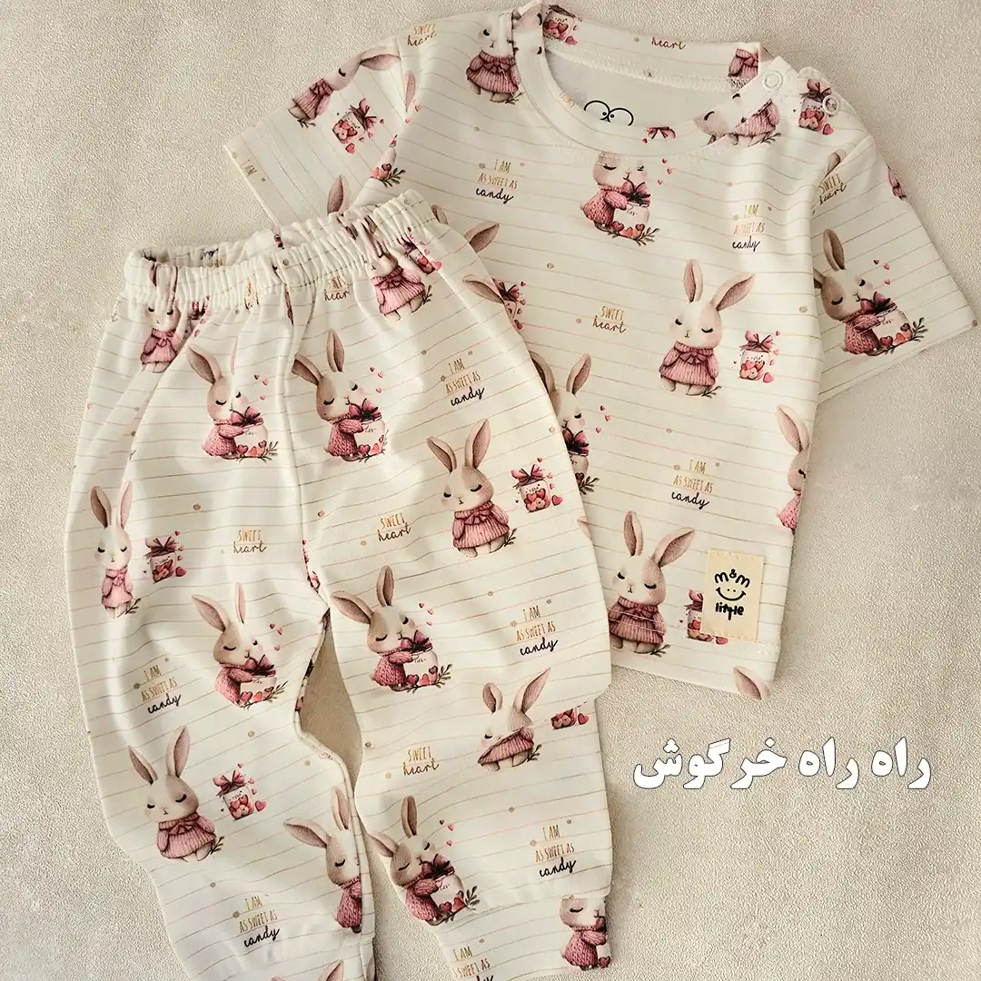 سایز 18 تا 24 ماه : ( قد تیشرت : 34 – پهنا تیشرت : 28 – قد شلوار : 44 )