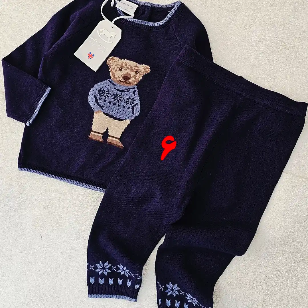 سایز 9 ماه : ( قد بلوز : 28 – پهنا بلوز : 25 – قد شلوار : 32 )