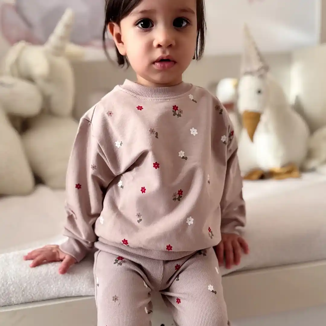 سایز 2 تا 3 سال : ( قد بلوز : 39 – پهنا بلوز : 35 – قد شلوار : 55 – قد تا فاق شلوار : 24 )